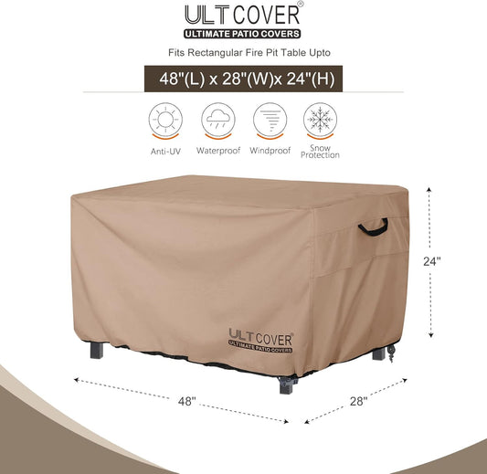 Rectangular Gas Fire Pit Table Cover 48X28 Inch Waterproof Heavy Duty Firepit Cover